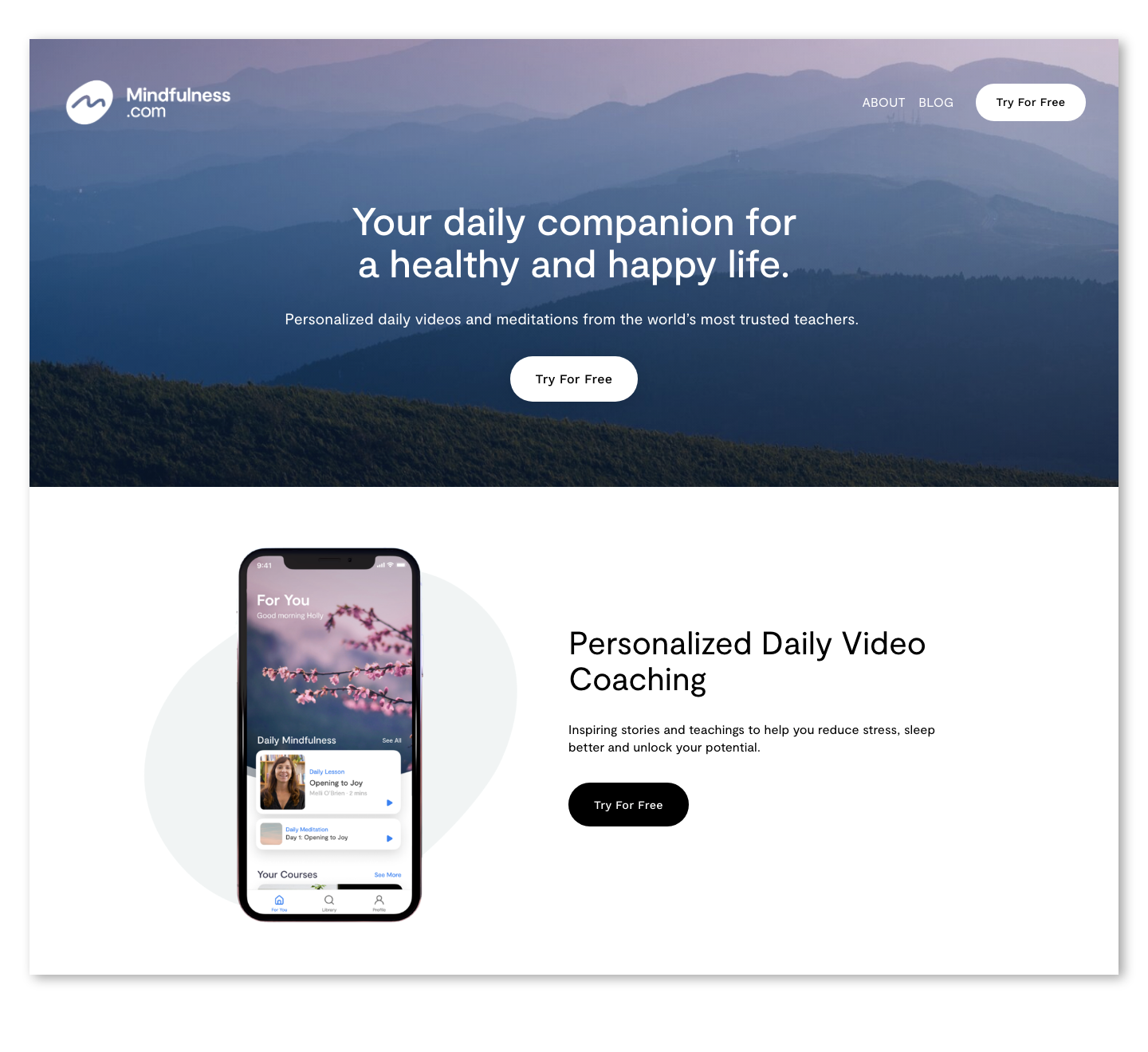 Mindfulness.com is the world’s central mindfulness platform, connecting beginners, students, teachers and experts through their App, yearly mindfulness summit, and website. I worked with mindfulness.com in the early stages to refine the tone of their branding through their imagery, investor decks, app advertising and website.